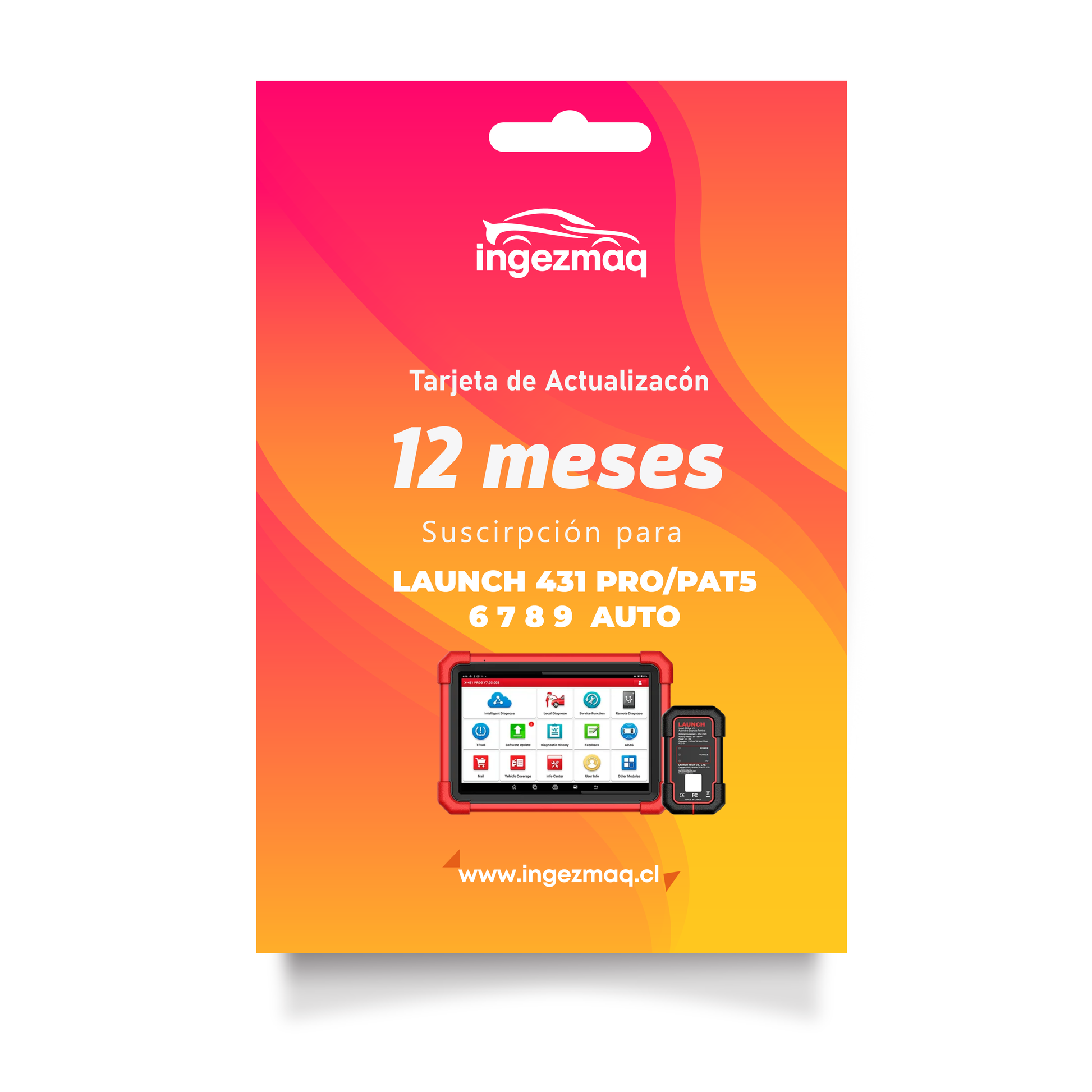 Mantén tu LAUNCH 431 PRO/PAD 5 6 7 8 9 AUTOS siempre actualizado con la suscripción oficial de 1 año. Activa nuevas funciones, amplia la cobertura de vehículos y disfruta de las últimas mejoras de software. Proceso 100% digital, sin envíos, con soporte directo de Ingezmaq.